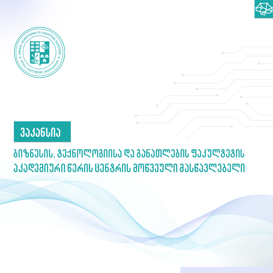 სსიპ ილიას სახელმწიფო უნივერსიტეტი აცხადებს ბიზნესის, ტექნოლოგიისა და განათლების ფაკულტეტის აკადემიური წერის ცენტრის მოწვეული მასწავლებლის ვაკანსიას (ბაკალავრიატის საფეხური).