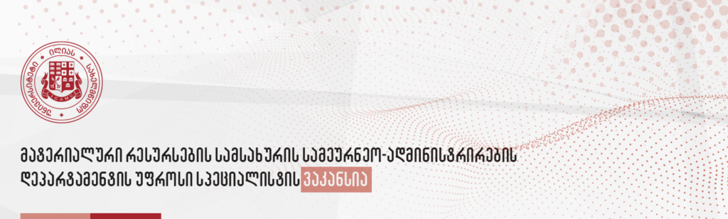 ილიაუნის მატერიალური რესურსების სამსახურის სამეურნეო-ადმინისტრირების დეპარტამენტის უფროსი სპეციალისტის ვაკანსია