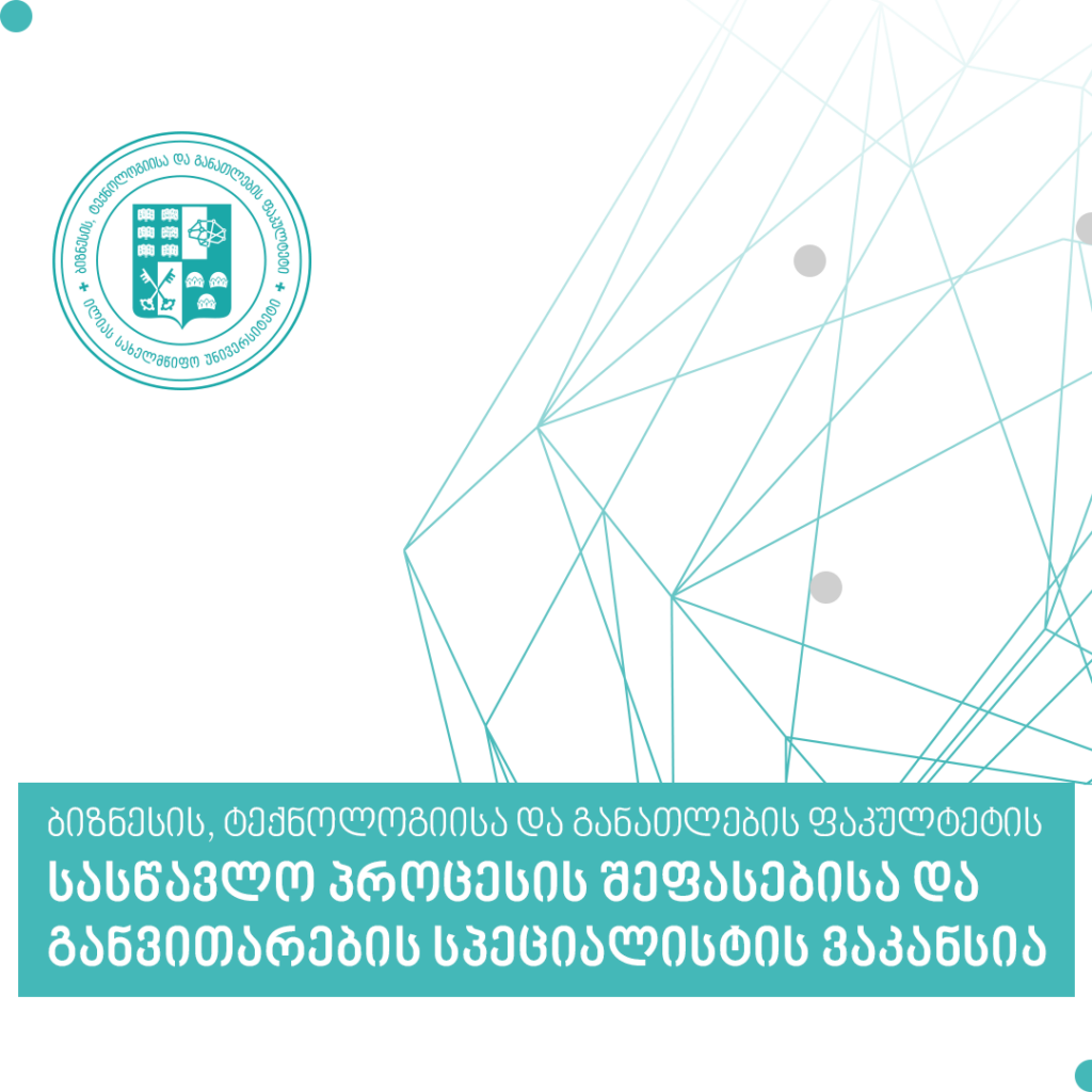 ბიზნესის, ტექნოლოგიისა და განათლების ფაკულტეტის სასწავლო პროცესის შეფასებისა და განვითარების სპეციალისტის ვაკანსია