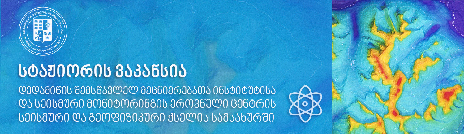 ილიას სახელმწიფო უნივერსიტეტი აცხადებს სტაჟიორის ვაკანსიას დედამიწის შემსწავლელ მეცნიერებათა ინსტიტუტისა და სეისმური მონიტორინგის ეროვნული ცენტრის სეისმური და გეოფიზიკური ქსელის სამსახურში.