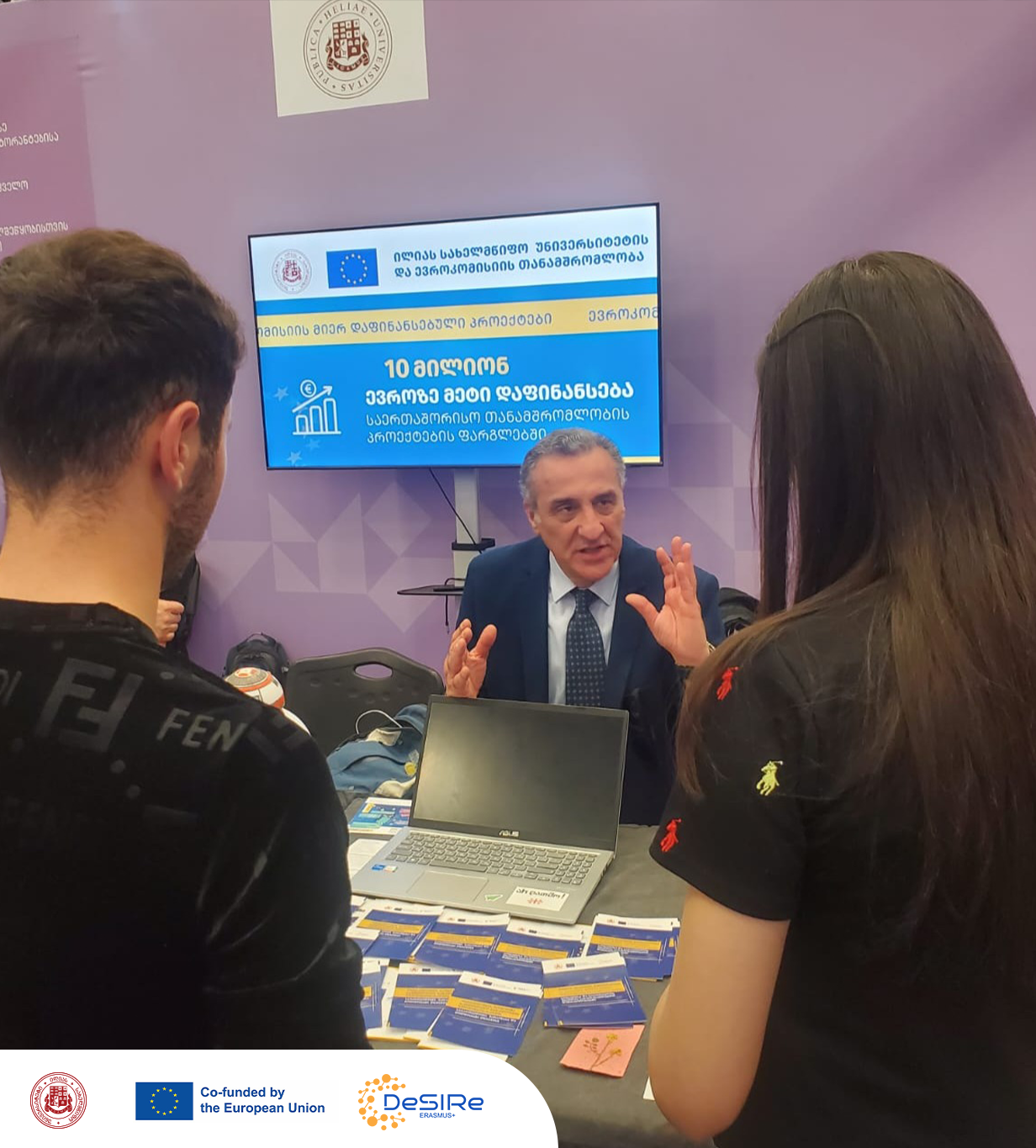 Europe Day 2025 was celebrated at Expo Georgia on May 9th. Ilia State University had a digital space where guests were introduced to various projects implemented in cooperation with the European Union. Professor Dimitri Japaridze, the project coordinator, presented these projects to the audience.
