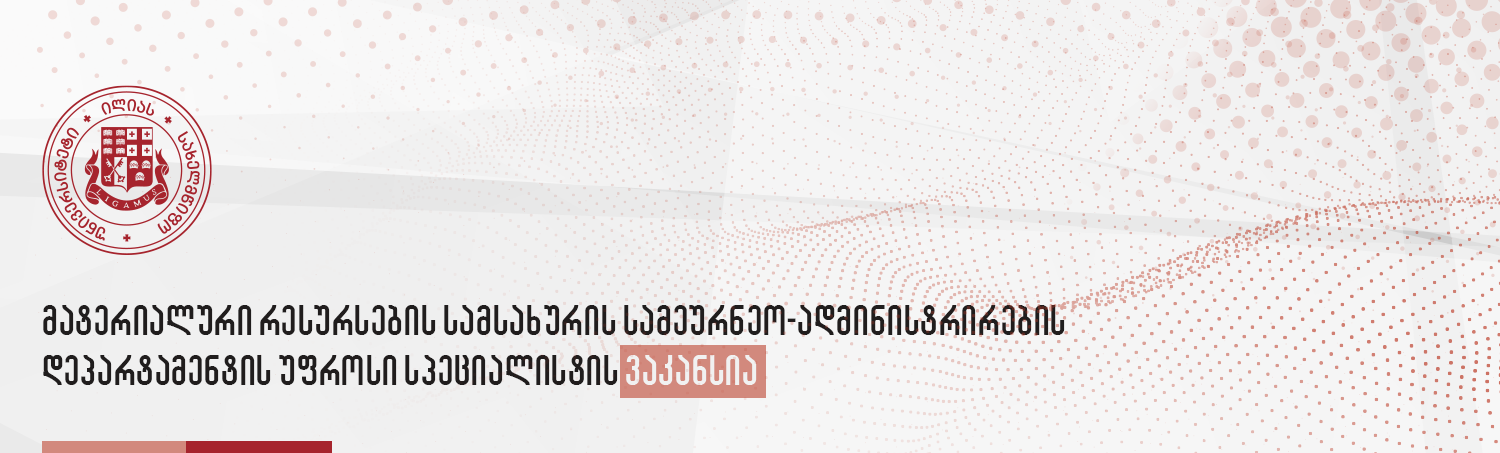 ილიას სახელმწიფო უნივერსიტეტი აცხადებს მატერიალური რესურსების სამსახურის სამეურნეო-ადმინისტრირების დეპარტამენტის უფროსი სპეციალისტის ვაკანსიას.