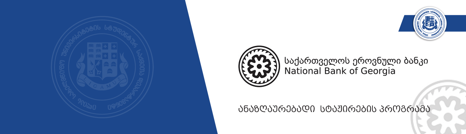 საქართველოს ეროვნული ბანკი აცხადებს ანაზღაურებად სტჟირების პროგრამას მიმღების თანამშრომლის პოზიციაზე.